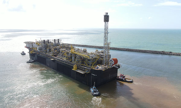 O navio plataforma P-71 saiu do estaleiro Jurong Aracruz, no Espírito Santo, no último sábado (15), com destino ao campo de Itapu, na região do pré-sal da Bacia de Santos. Ele produzirá diariamente até 150 mil barris de óleo e até seis milhões de metros cúbicos de gás.
